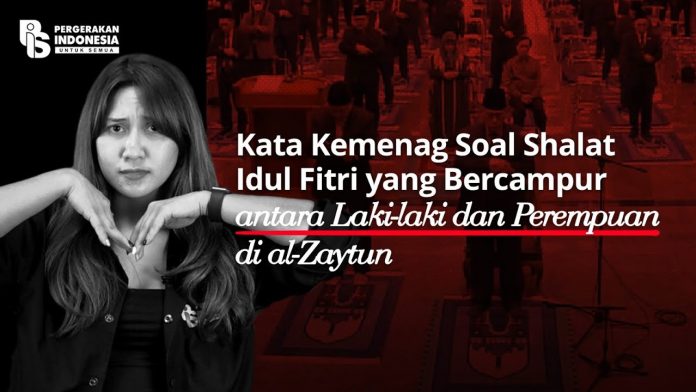 Nampak jamaah laki-laki dan perempuan berbaur di shaf yang sama. Itu dianggap tidak lazim karena shaf laki-laki dan perempuan seharusnya dipisah. Apa yang terjadi pada 1 Syawal itu menuai banyak komentar.